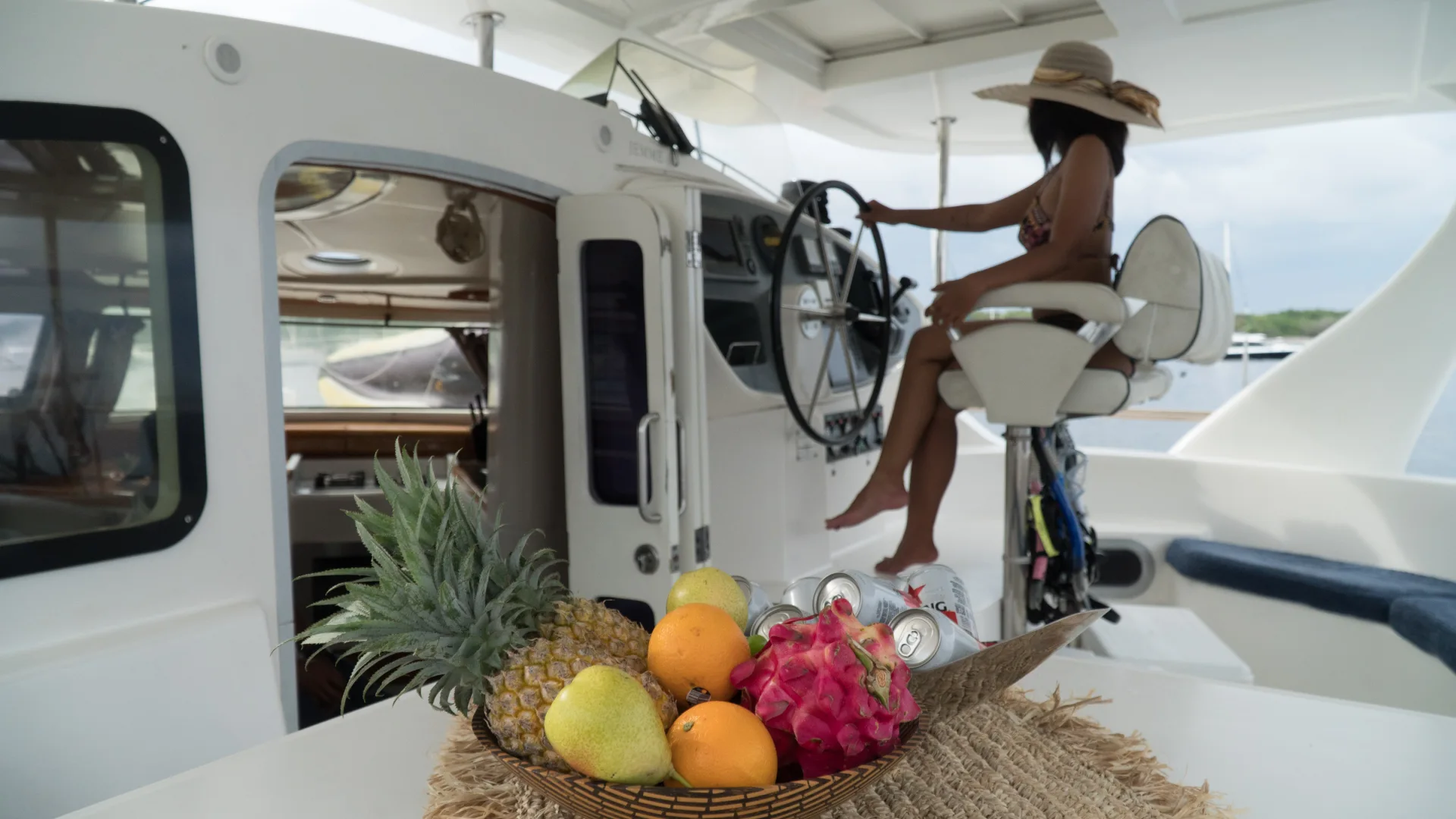 For our 4-hour Morning and Sunset charters, lunch or dinner is served on board. We’re happy to accommodate dietary requirements with advance notice. Your charter rate also includes onboard snacks (chips & dips), sliced tropical fruit, water, and soft drinks. Please note for Morning/Sunset charters there is no shore stop all food and beverages are served on board.